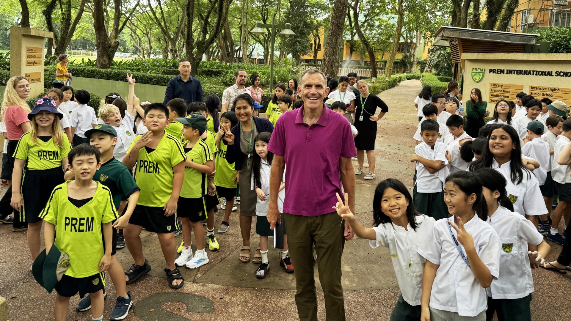 Mark with students at the Prem Tinsulanonda International School in Mae Rim, Thailand.