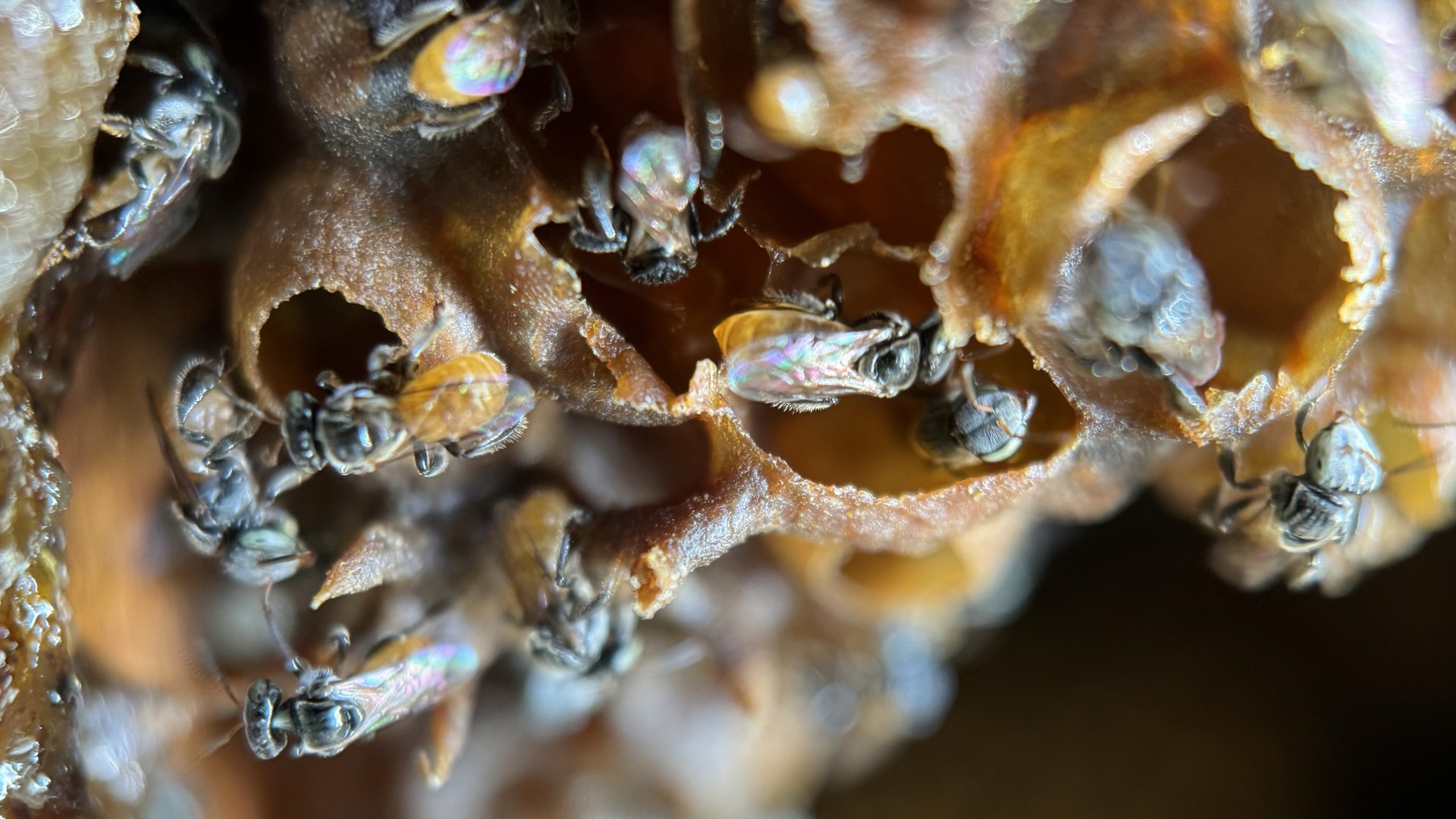 Macro-photography workshops of the stingless bee colonies on on the school campus, engaged students to observe the natural world in unexpected ways.The fantastic and other-worldly interior of a stingless honeybee hive.