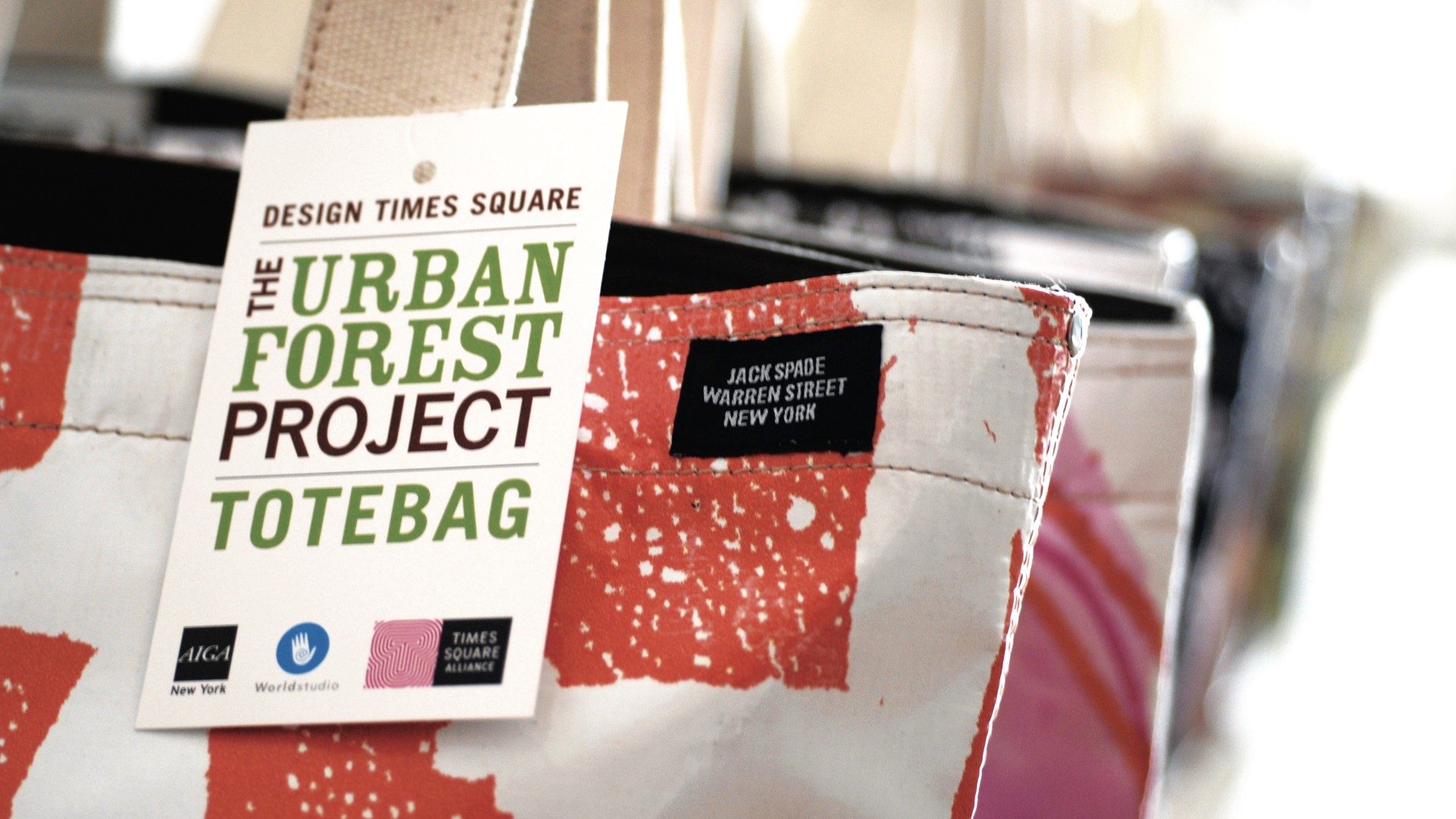 At the close of the exhibition in Times Square, the banners were re-purposed into tote bags by Jack Spade a division of accessories designer Kate Spade.